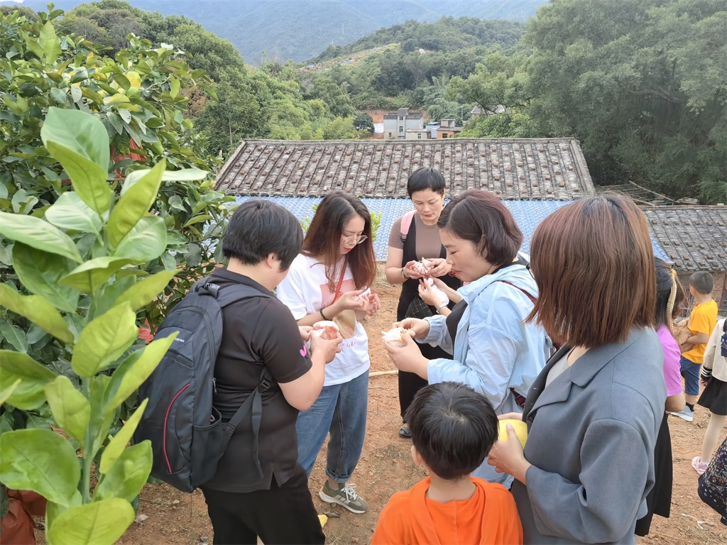 摘完杨桃后又到了柚子果园,由于今年下半年福建气候干旱,果子成熟汁水不如往年,据果园主人说今年果农种植十分不易,果子因卖相和品质不如往年,因此宁愿烂在地里也不愿花大成本采摘出售,为了助力乡村振兴,为果农助些绵薄之力,大家纷纷在果园挑选品相较好的果子进行了购买。