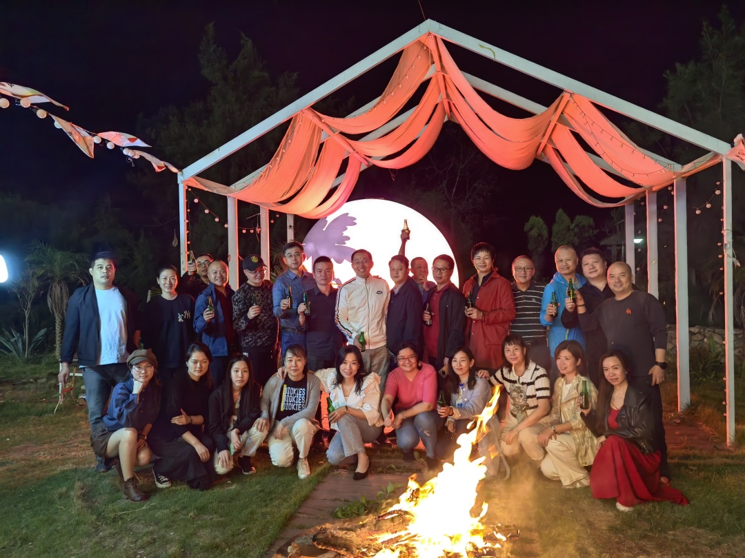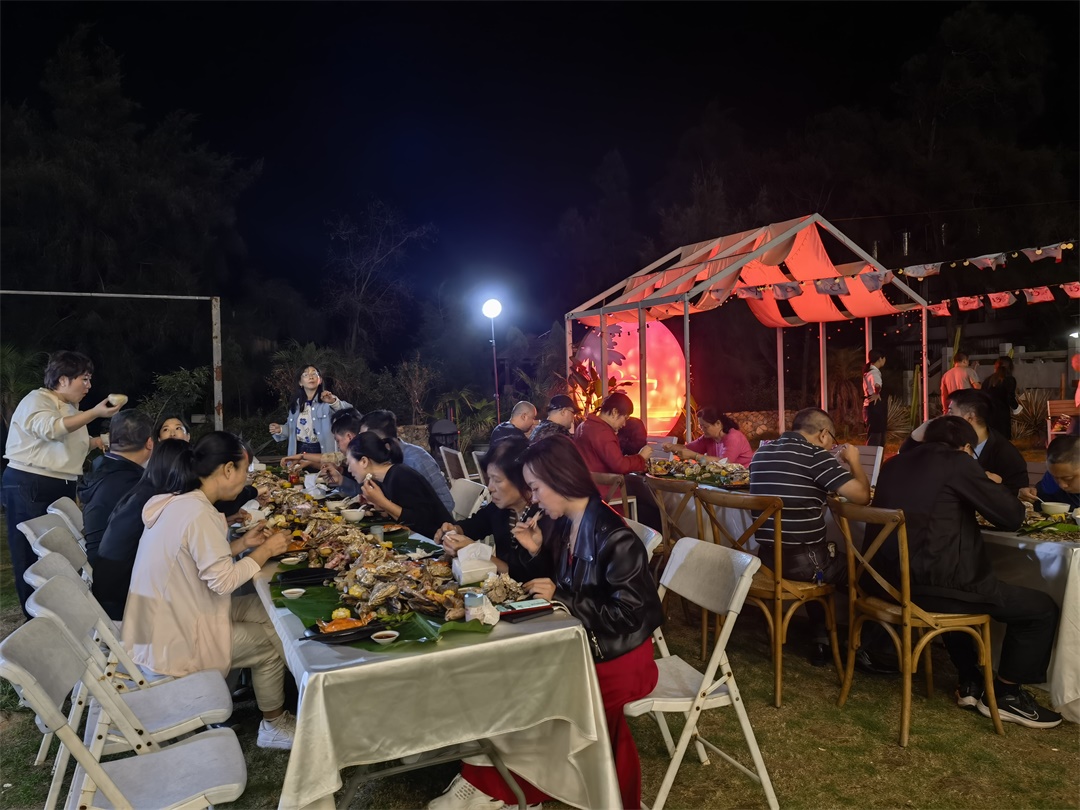游玩行程结束后,夜幕降临,篝火晚会环节也随之开启。晚宴过程中,大家享受美食、唱歌、围着火炉玩游戏、烤海鲜、看烟花,气氛极度热烈。两个商会企业家会员代表围坐一起畅所欲言,对自家企业性质、主营业务、行业特点、经营理念等方面进行介绍,会员们互相交流,共谋发展新思路。