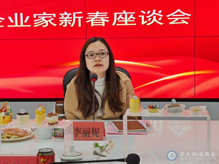 首先,会上华大街道办事处主任李丽妮对企业家们为华大街道经济社会发展所作的贡献表示感谢并致以新春的美好祝福。