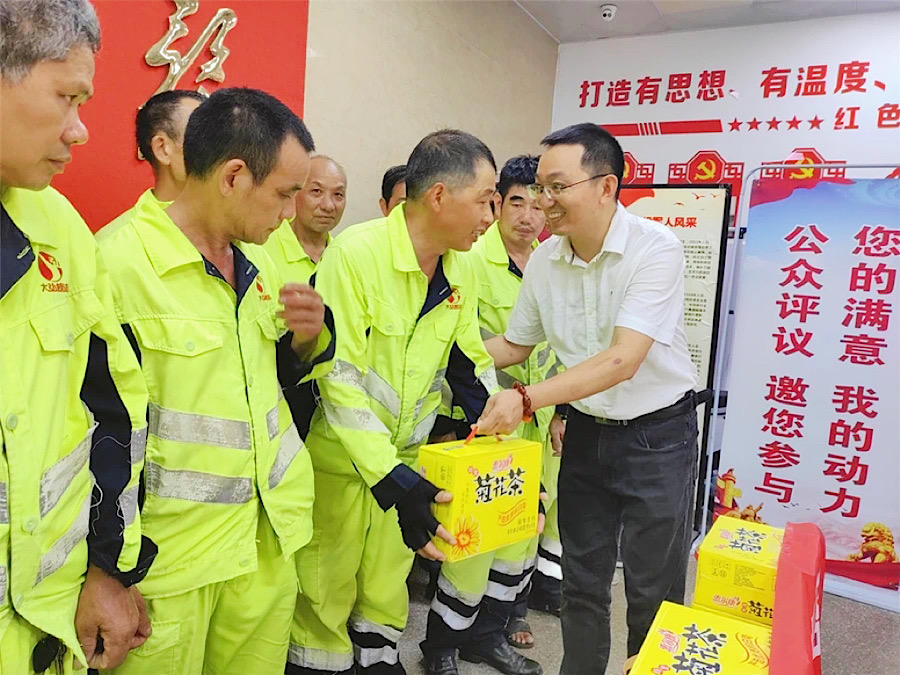 榕城虽已入秋,但炎热依旧。在这个夏秋之际,为向坚守一线岗位的城管和环卫工人表达敬意与关爱,8月30日下午,华大街道商会开展“清凉在榕城,关怀暖橙蓝”送清凉慰问主题活动,向辛勤工作的劳动者们送去关怀与慰藉。